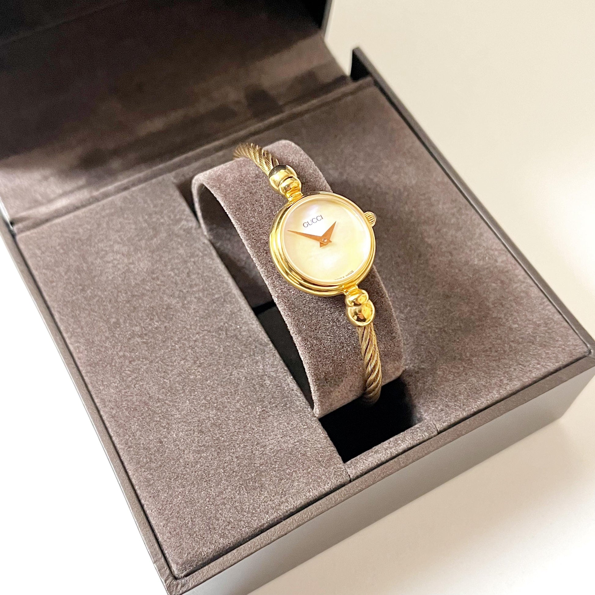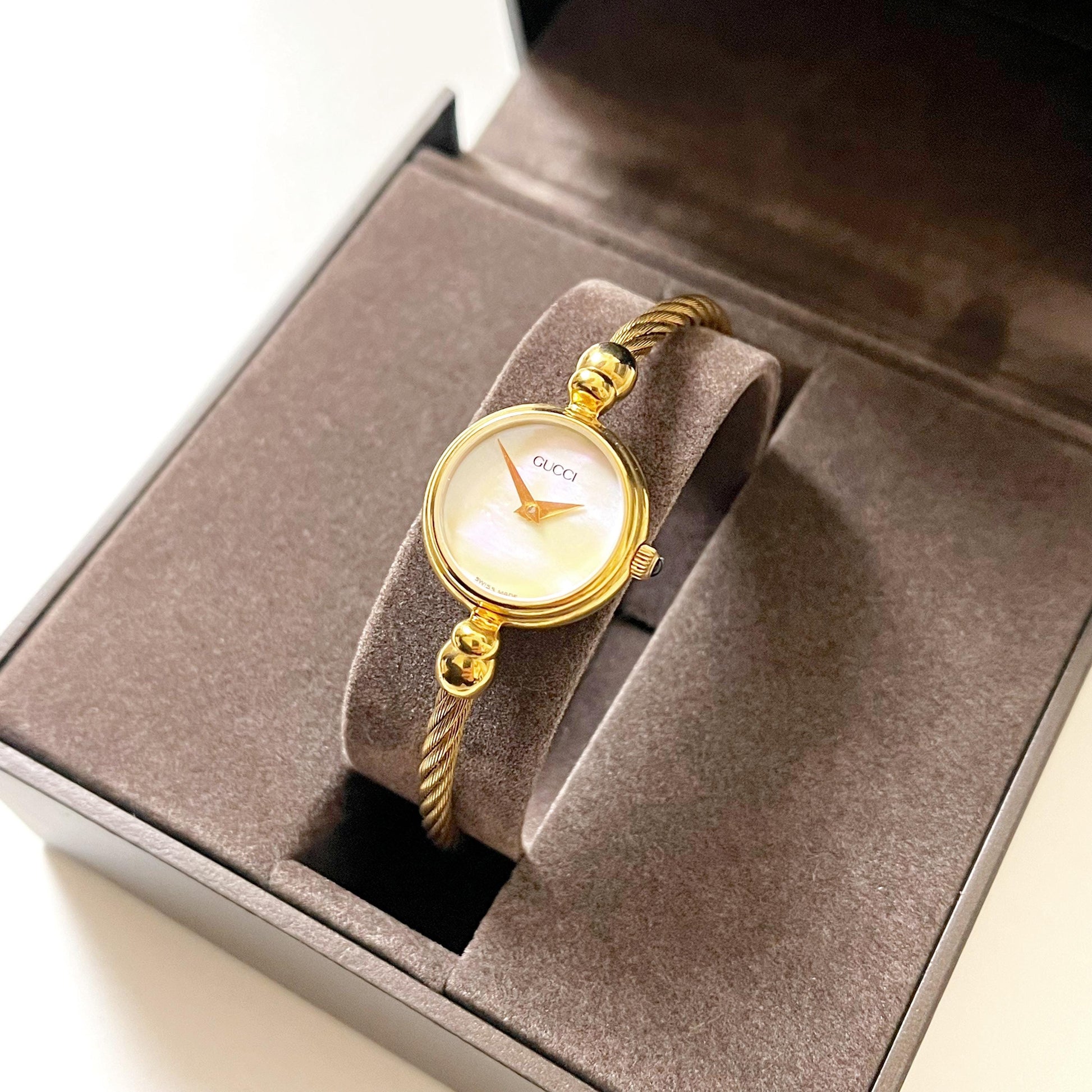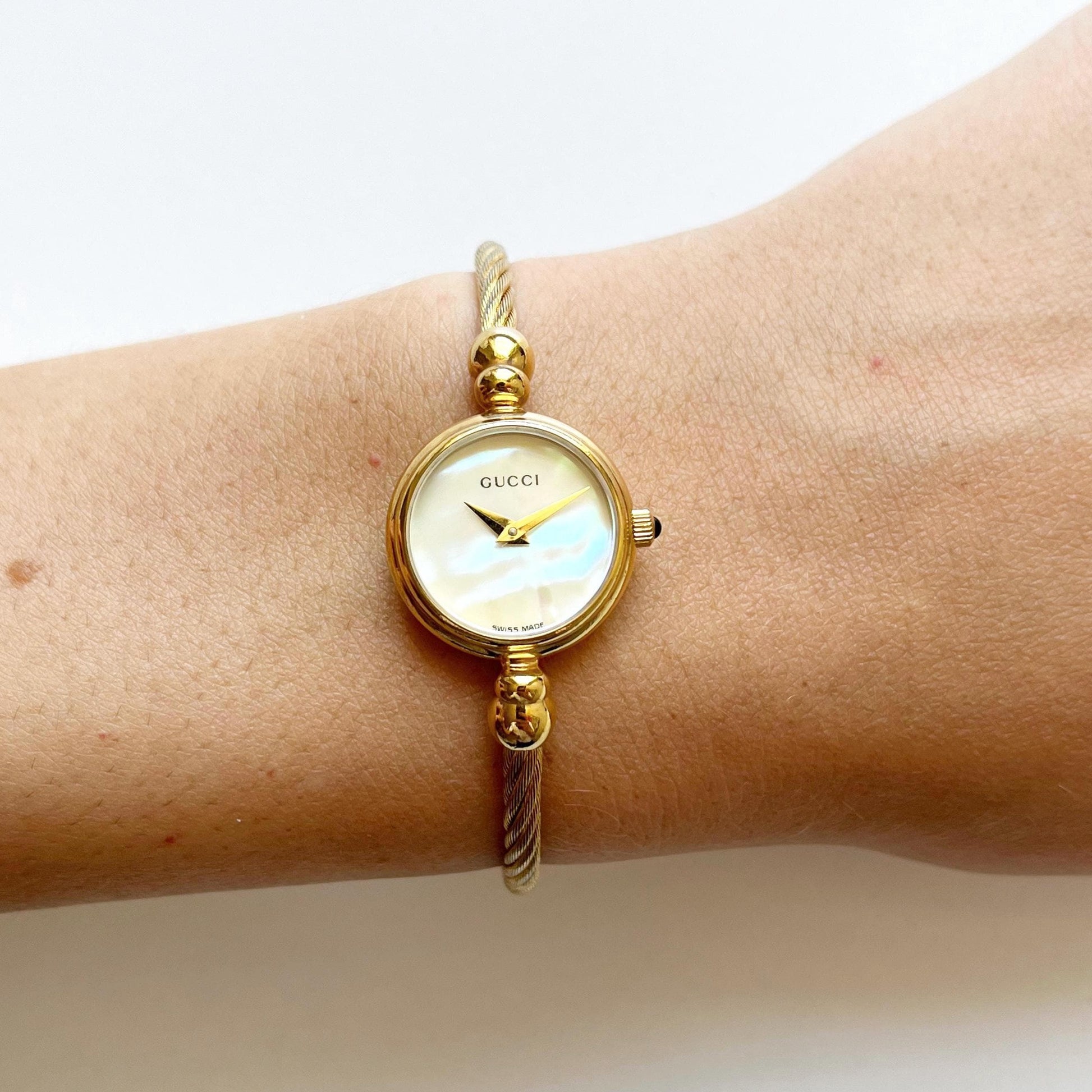 Gucci Vintage Women’s Bangle Gold Watch, Mother of Pearl Dial, Gift for Her